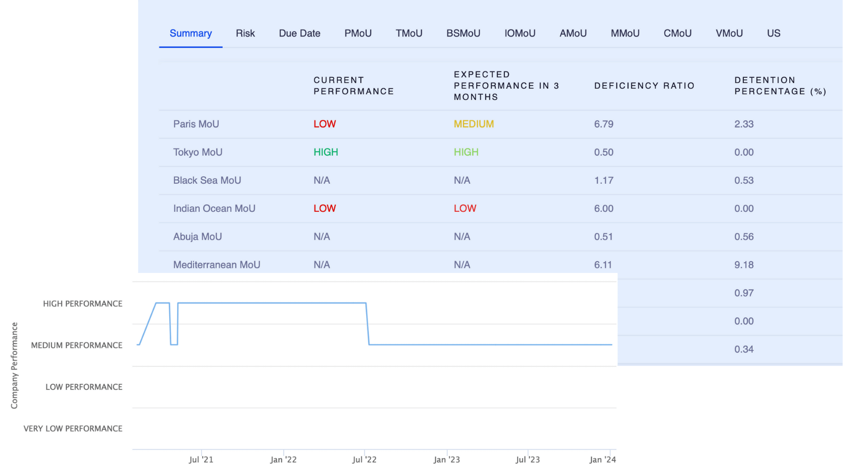 Monitor company performance and PSC risk across all MoUs